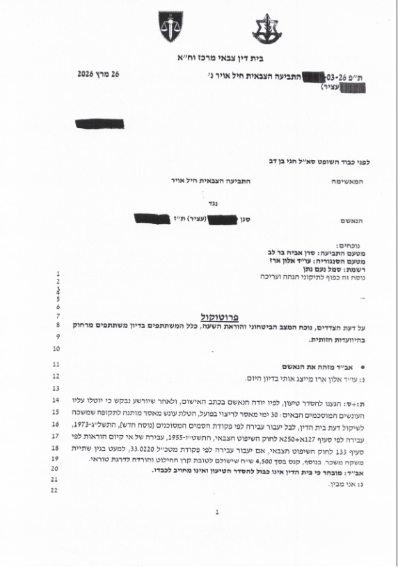 הליך משפטי עם חשדות לעבירות שימוש בלתי חוקי בנשק, אלימות כלפי חייל ושיבוש הליכי חקירה הסתיים בדין משמעתי בלבד!