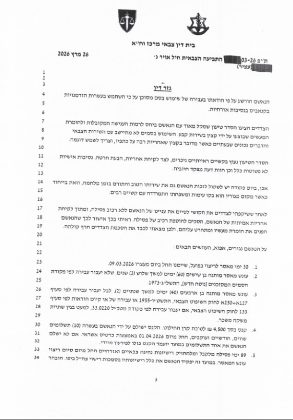 שמונה חודשי עריקות הסתיימו ללא מאסר וללא עבודות צבאיות אלא בקנס של 1,000 ש"ח בלבד